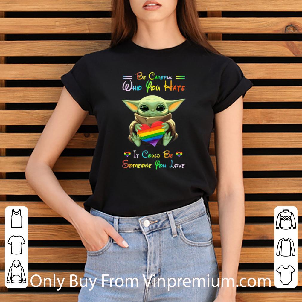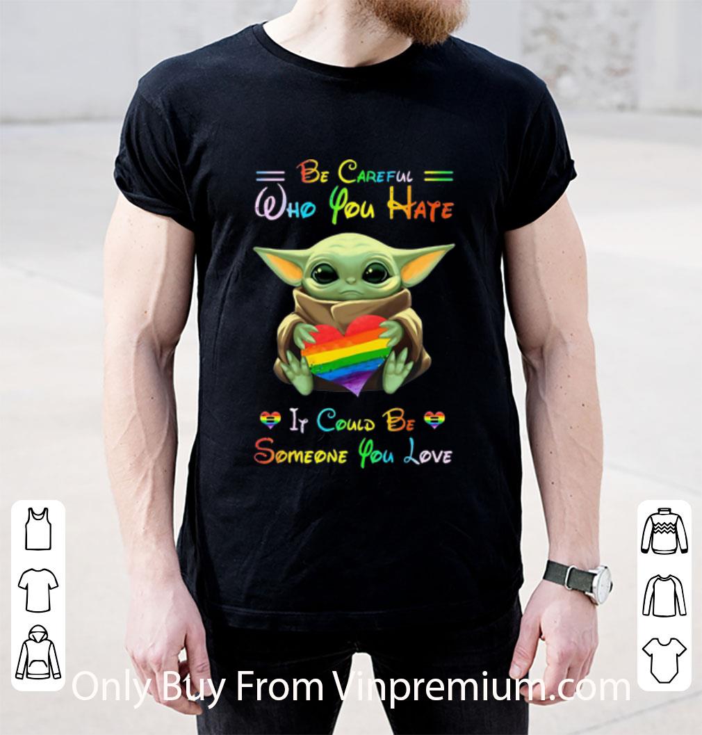 Original Baby Yoda Hug LGBT Be Careful Who You Hate It Could Be Someone You Love shirt, Hoodie, Sweater, Longsleeve T-Shirt For Men and Women